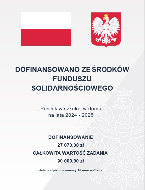 Zgodnie z zawartą z Wojewodą Mazowieckim umową Nr WRPS-VI.946.1.275.2026 na realizację Programu „Posiłek w szkole i w domu” w 2026 roku, Gmina Liw uzyskała dofinansowanie z budżetu państwa.
